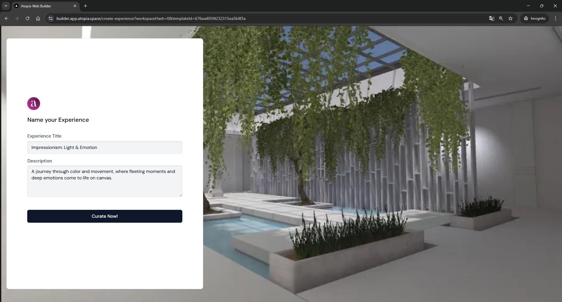 Hello there, and welcome to Atopia! 😊 Let’s make your first virtual exhibition! This guide will walk you through each step.